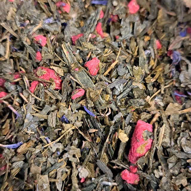 The vert bio Sencha framboise violette.